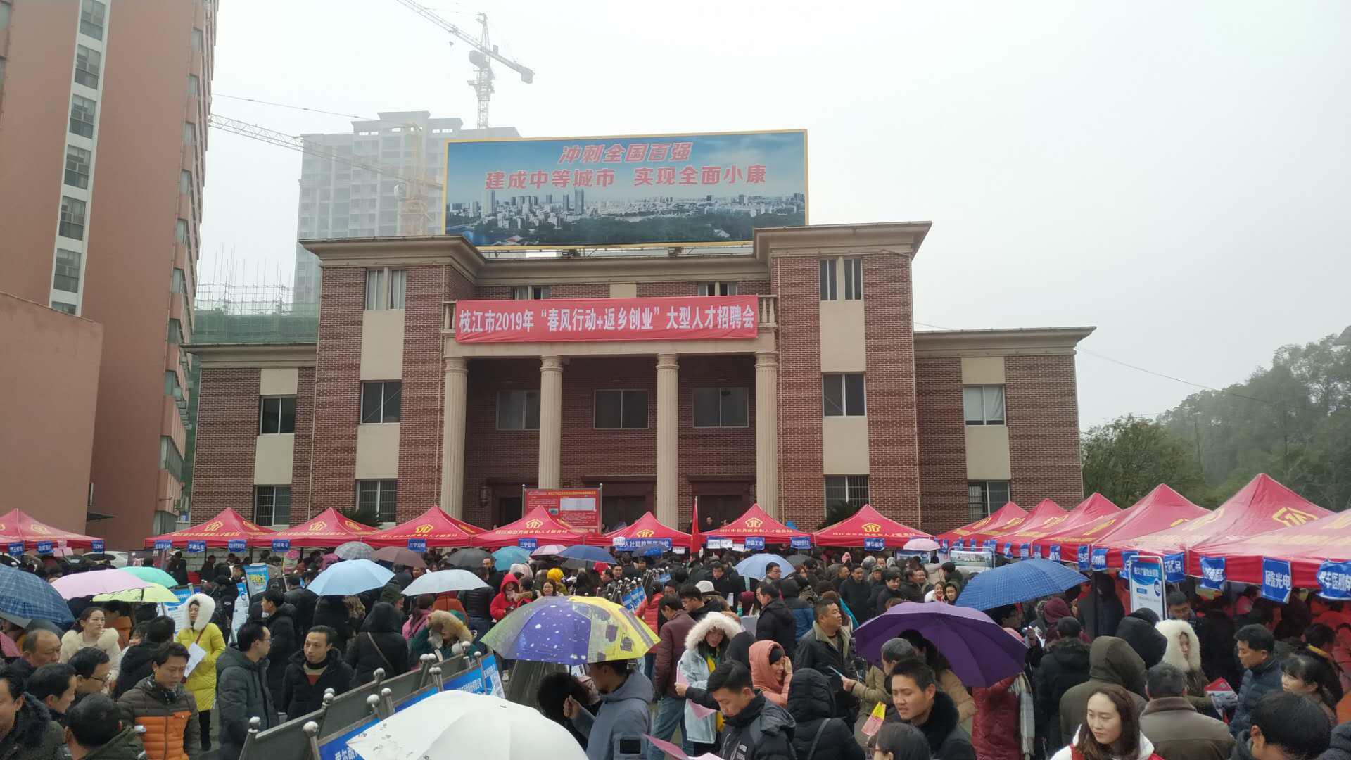 ▲2019年,在枝江举办“春风行动+返乡创业”大型人才招聘会