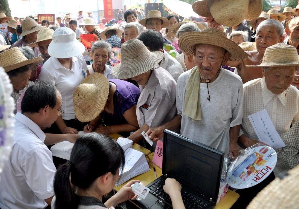 ▲2009年,宜昌市超龄职工养老金首发仪式现场
