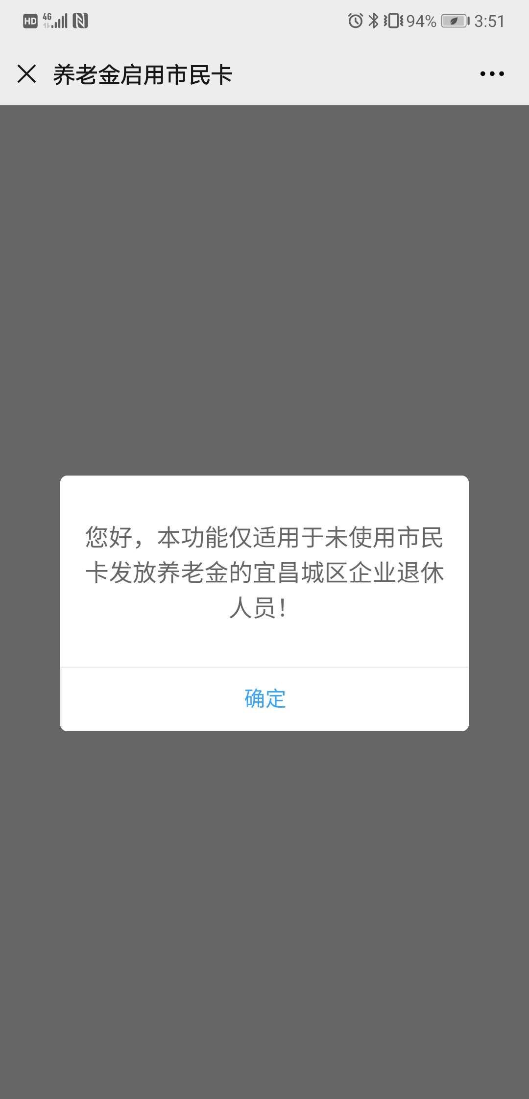 2、本功能仅适用于于未使用市民卡发放养老金的宜昌城区企业退休人员。