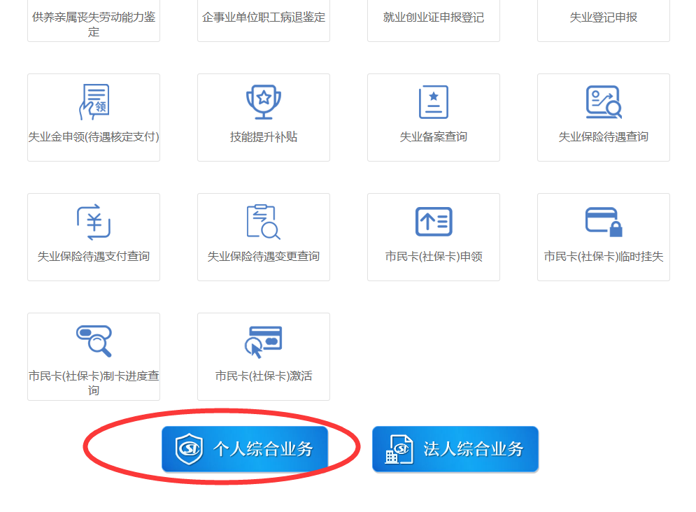 3.下滑页面,选择点击“个人综合业务”