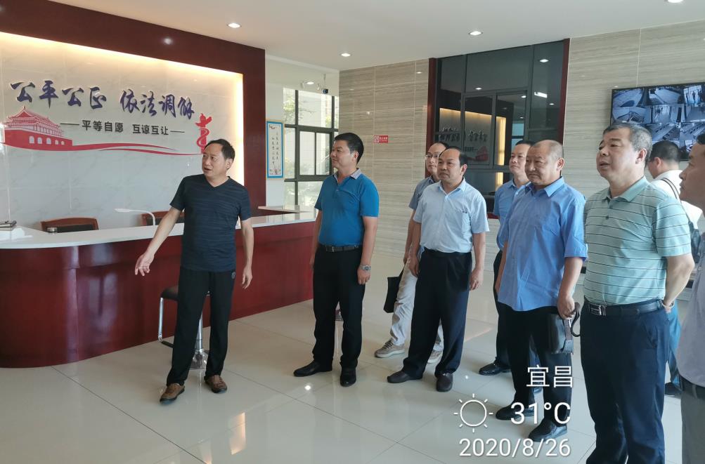 调研组一行围绕“要素式办案改革、劳动人事争议法律援助、劳动人事争议案件办理、基层劳动人事争议调解、信息化办案服务、仲裁机构和行风建设”等6个方面内容,先后深入宜昌市、宜都市人社局和劳动人事争议仲裁院、宜都市联合专业人民调解委员会等单位,实际查看仲裁服务窗口、案件审理庭、劳动人事争议法律援助工作站、仲裁调解室和专业调解组织建设运行情况。