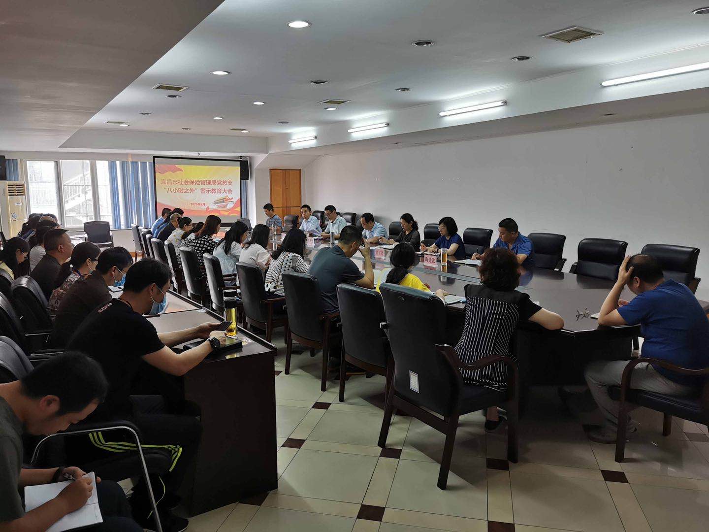 9月10日下午,市就业局、市社保局分别召开“八小时之外”警示教育大会,从规范、净化党员干部生活圈、社交圈入手敲响警钟,加大对干部职工八小时之外的监督力度,筑牢廉洁自律防腐墙。