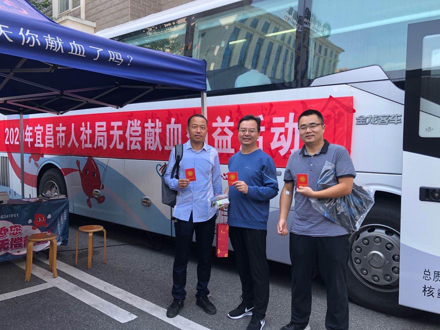 市人才服务局文少军、市社保局陈强、市社保征稽局周涛三名扶贫干部专门从点军区三岔口村、秭归县庙垭村和白鹤洞村赶来,参加义务献血。