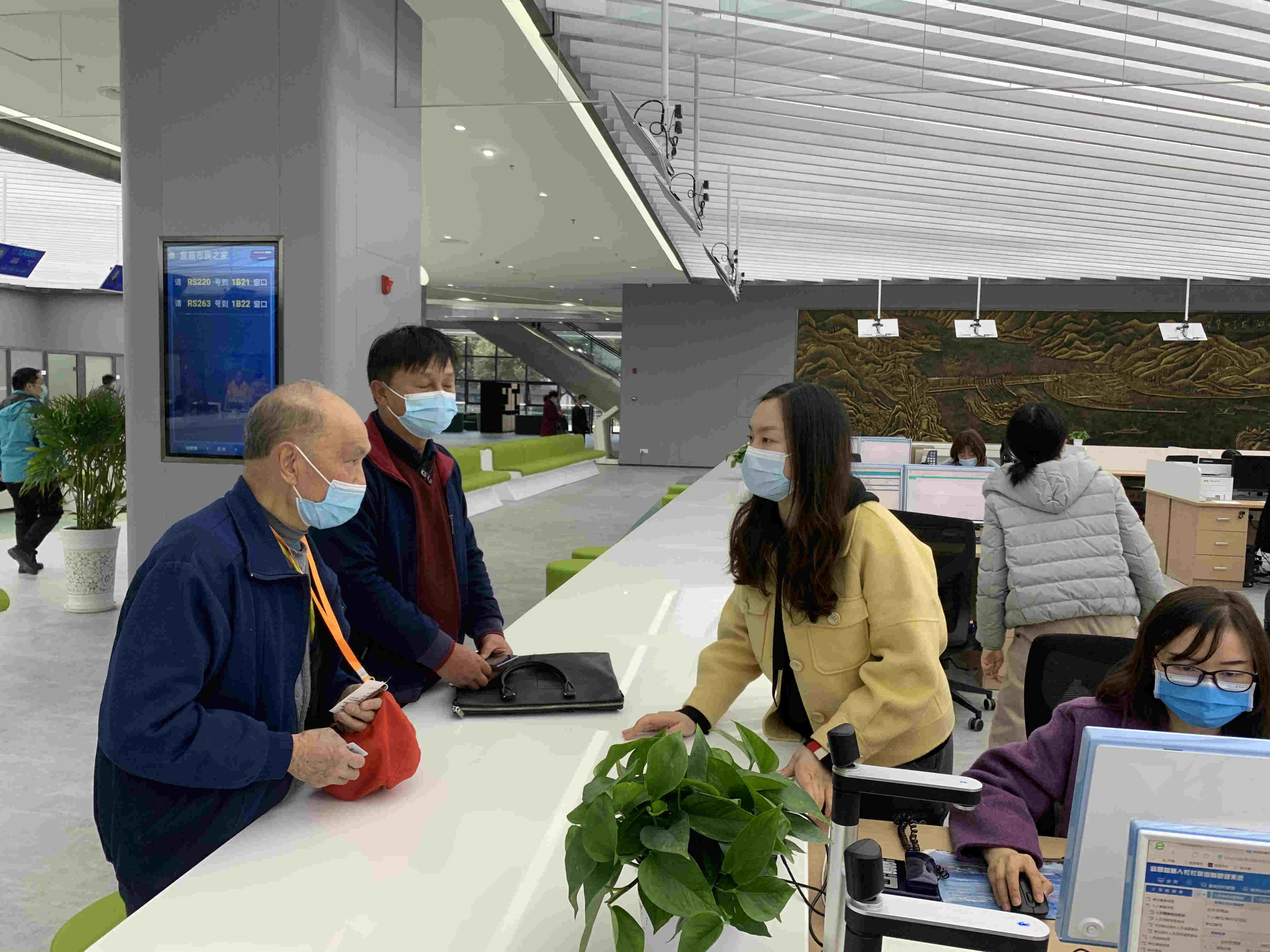宜昌市民之家正式向全市市民开放首日,市社保局经办人员一大早就迅速进入紧张的工作状态,热情高效服务办事群众。接待群众100余人,办理业务86项,获得广大市民群众一致好评。(程坤摄)